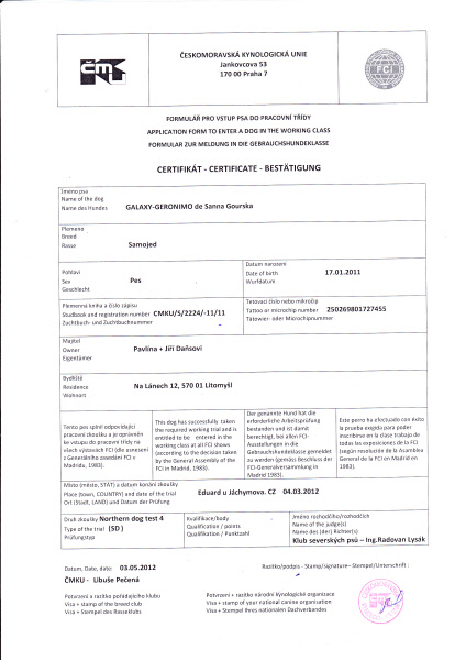 C2 - spřežení do 4 psů uzavřená skupina pro Gronský pes,