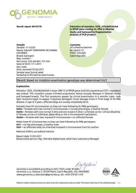 krasavec, šampion, smíšek a zpěváček Geronimo Galaxy de Sana Gourska.